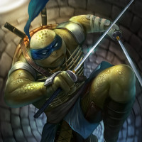 Ninja Turtles. He is shown wielding his trademark katana sword and wearing his signature green