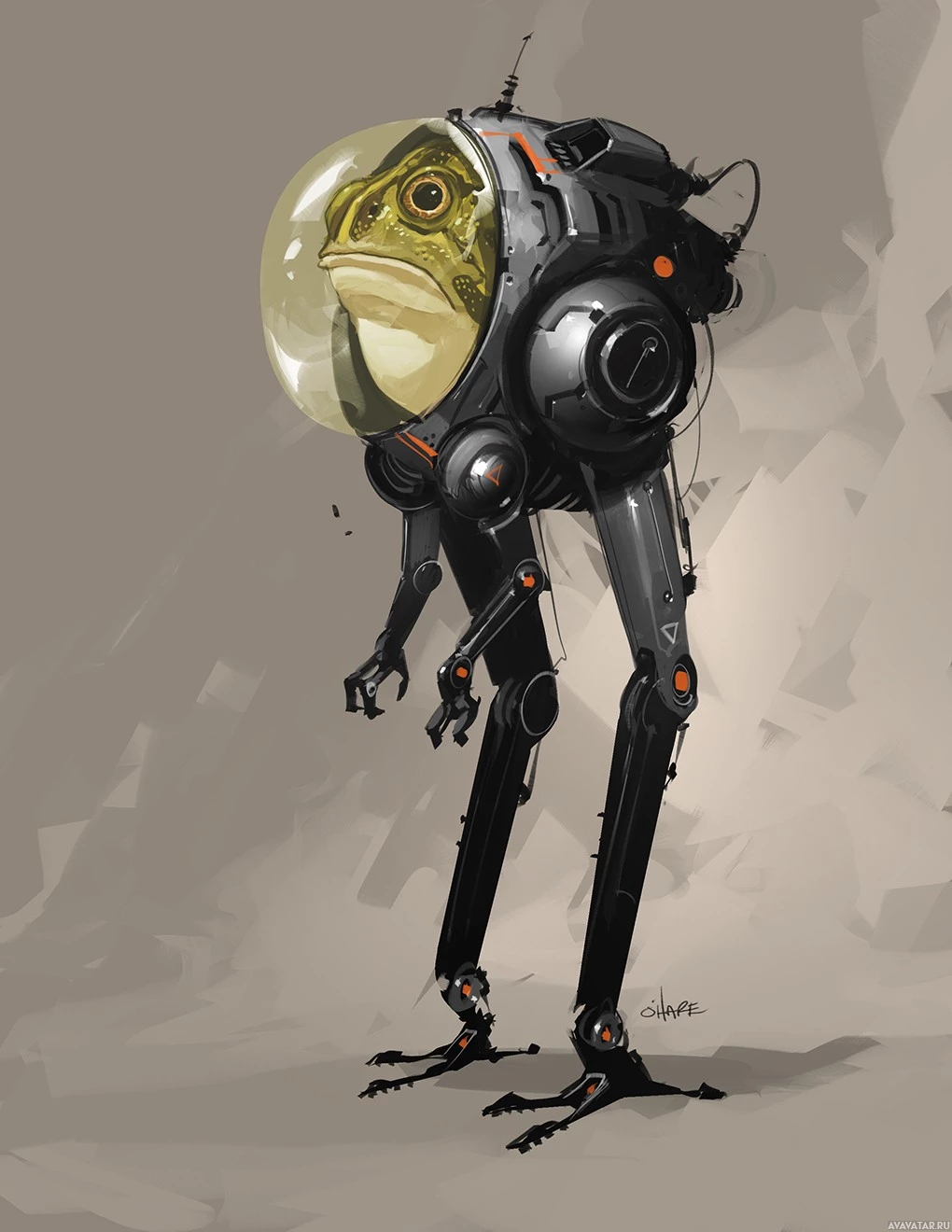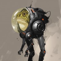a space helmet that houses an astronaut. This gives the impression of the frog being an astronaut or explorer. The robot has