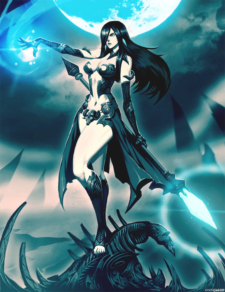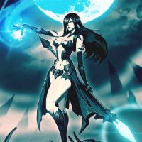 fantasy art. Her posture suggests she might be using her powers for defense or offense. The background has a dramatic sky with clouds and