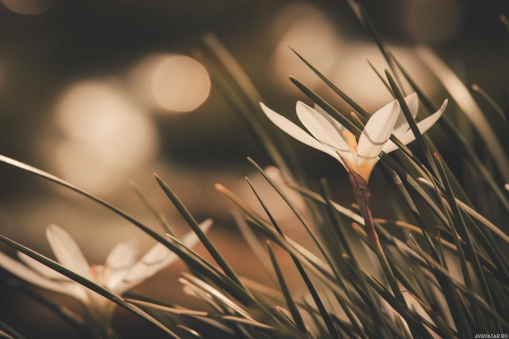 Картинка показывает крупный план белых цветов, которые выглядят как снежные капли или похожие зимние цветы. Эти растения часто встречаются в садах и природных условиях. Фон мягко размыт, вероятно, указывая на неглубокую глубину резкости или сосредоточенность на цветах, создавая спокойную атмосферу.