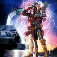 book lore. On the left, there is a character with red and black attire, which resembles Deadpool's costume, known for his humor and tendency to break