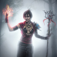 magical abilities, set against a dramatic background that suggests a dark or eerie setting.