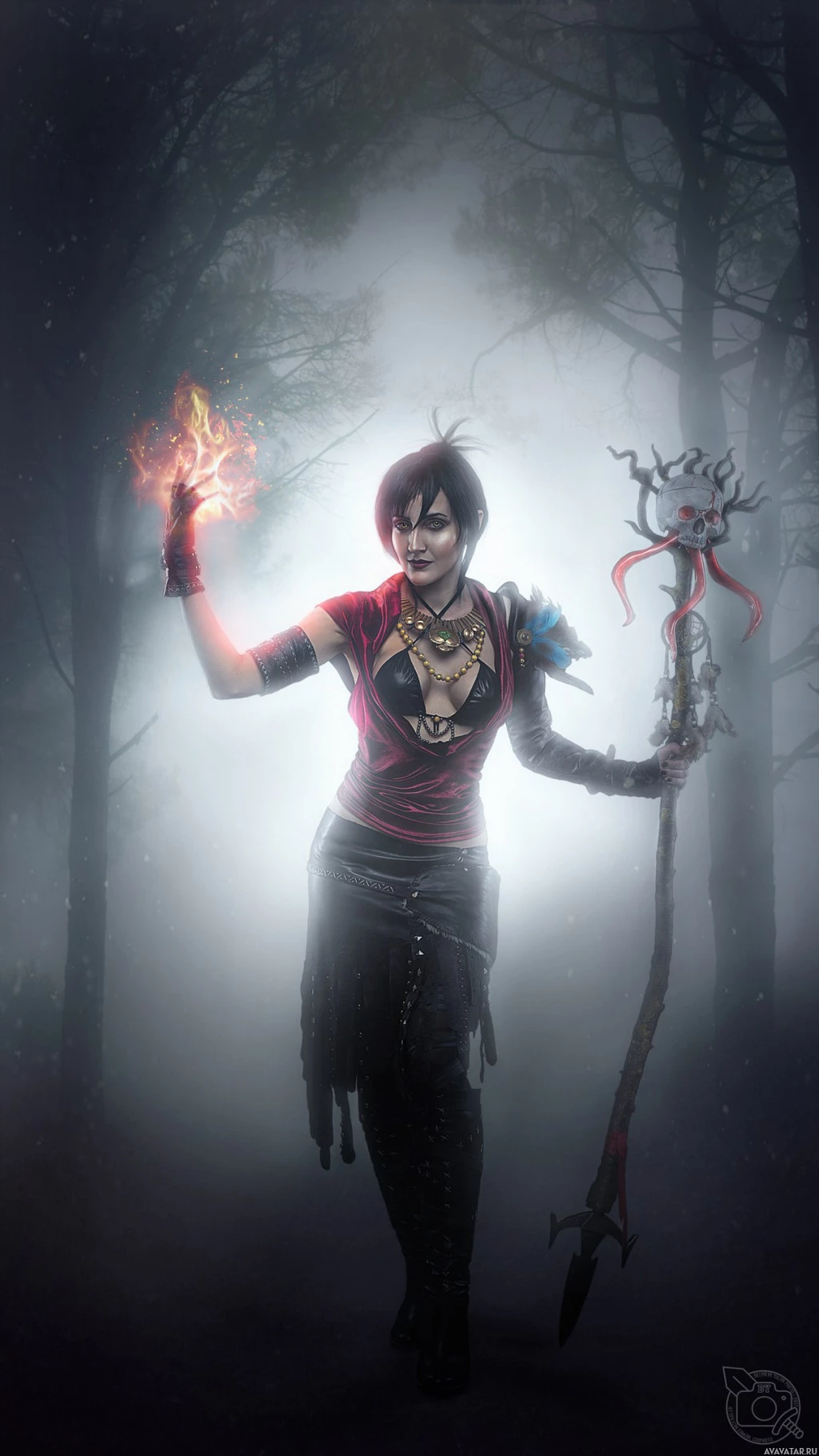a powerful mage and member of the Grey Wardens. This artwork captures her mystique and potent