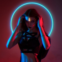 visual effect in the background. It's important to note that this description does not include personal or identifying details about the model.