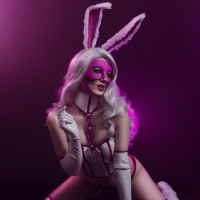 scheme of the costume. The person's pose and attire suggest a playful or performative nature to their appearance.