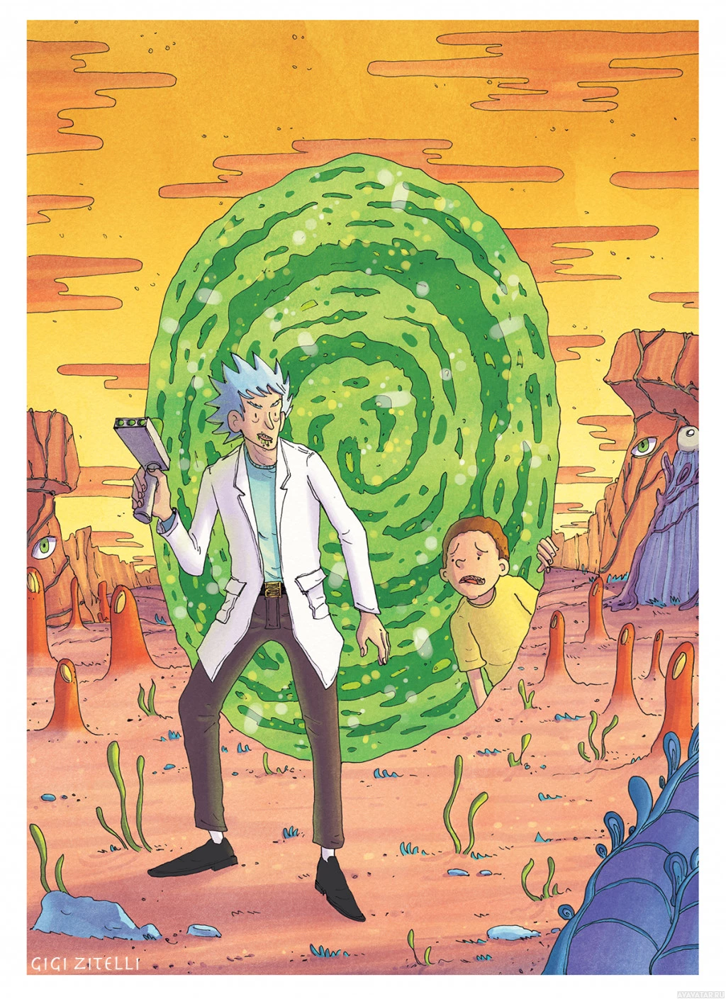 animated characters from the television series "Rick and Morty." On the left, there is a character named