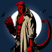This is an illustration of Hellboy, a fictional superhero character from