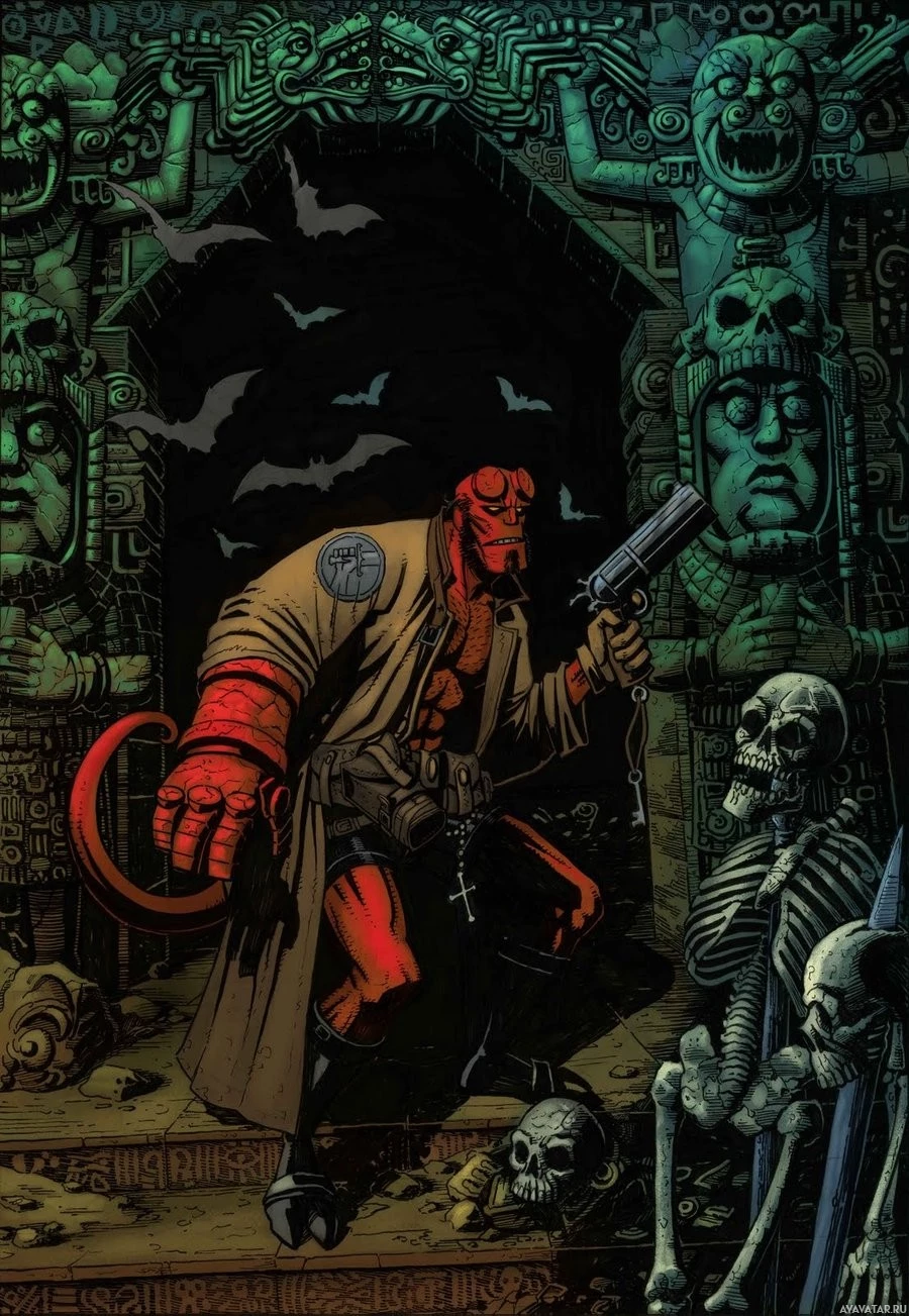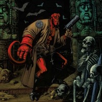 book cover featuring a character who appears to be Hellboy, dressed in a trench coat and holding a gun. He's stepping out of