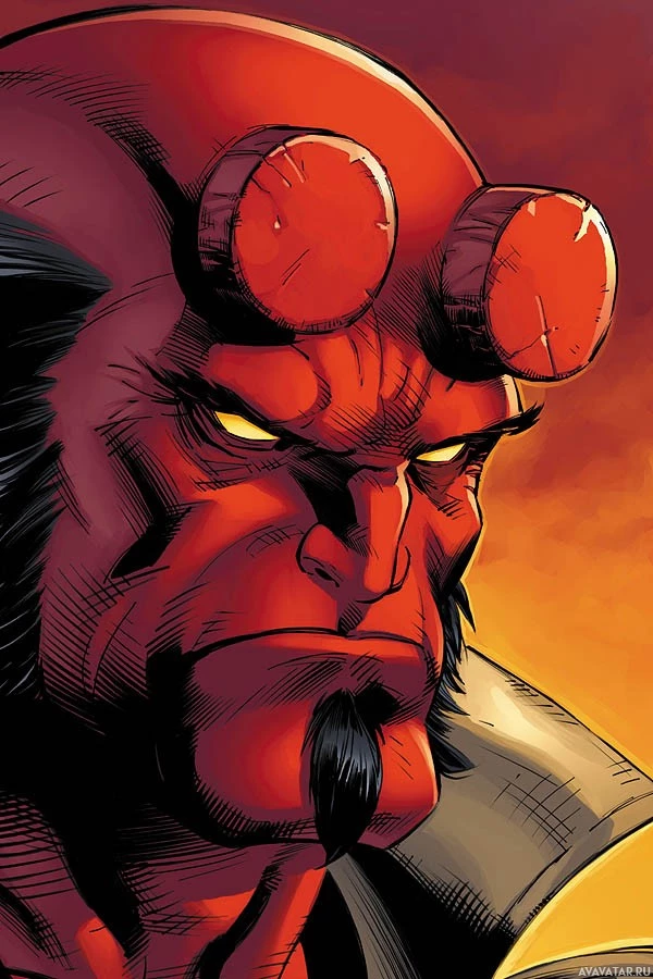 The image features a character known as Hellboy. He is depicted with his signature