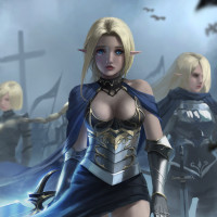 female characters, likely fantasy-themed given the elven features. They are shown in dynamic poses, suggesting they might be in a battle or