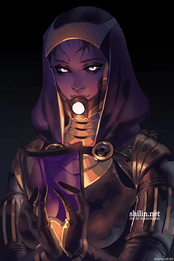 purple eyes and a scar across her face. Tali is known for her intelligence and technological expertise within the game's universe. She wears