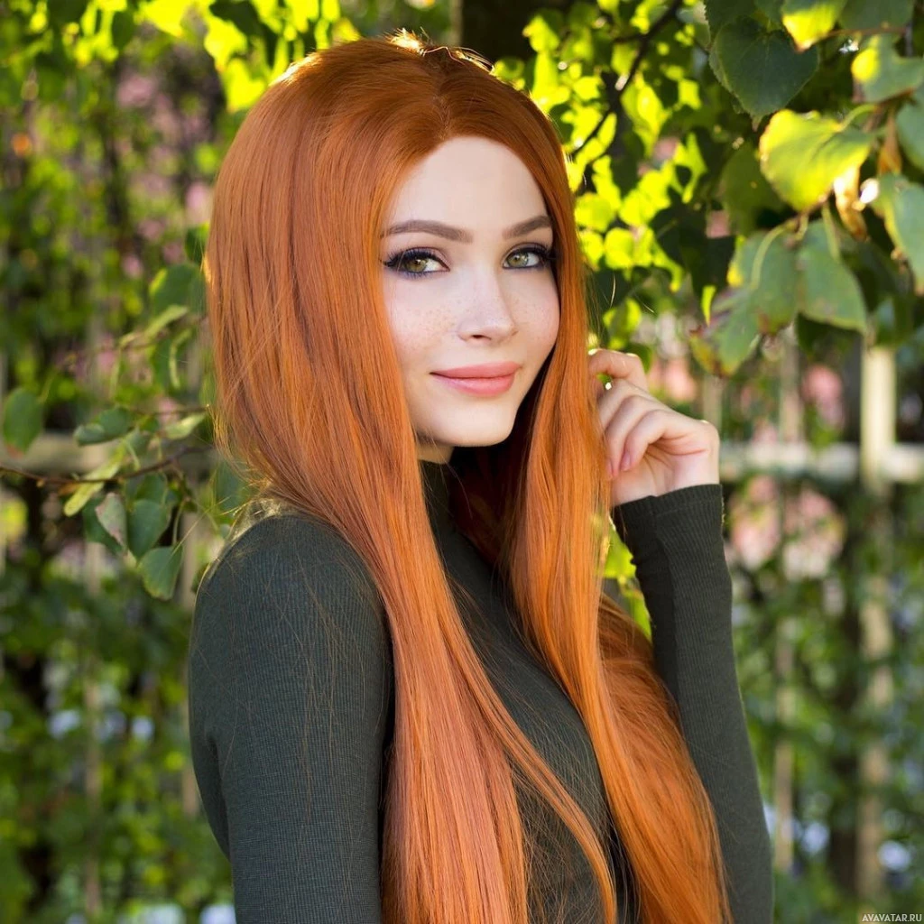 На картинке изображена молодая женщина с рыжими волосами. Она носит темный свитер с водолазкой и держит руку на бедре, позируя для фотографии. Ее выражение дружелюбно, и она, кажется, находится на открытом воздухе под какой-то листвой. Трудно определить, является ли она знаменитостью или нет, основываясь исключительно на этом изображении без какого-либо контекста или дополнительной информации.