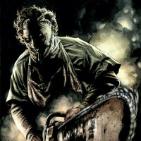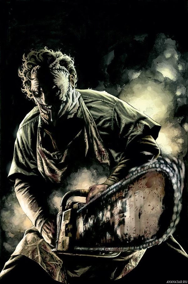 The image depicts a character holding a chainsaw and appears to be in a dark, possibly horror-themed setting. This character is known from the "Scream" series of movies, where he is portrayed as