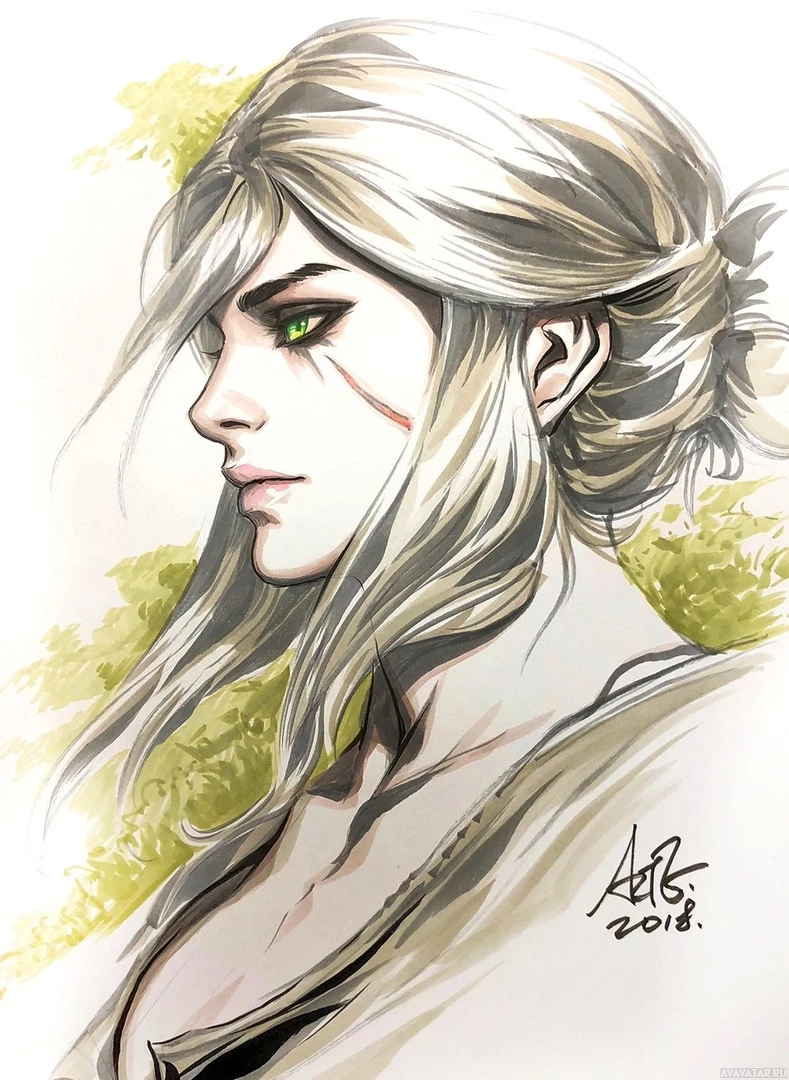 Wild Hunt," a popular action role-playing game developed by CD Projekt. The character depicted is known as Ciri, played by the actress Freya Allan in the Netflix