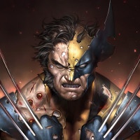 a member of the X-Men and is notable for his regenerative abilities, which allow him to recover from almost any wound at an accelerated rate. The image shows him with intense facial features and