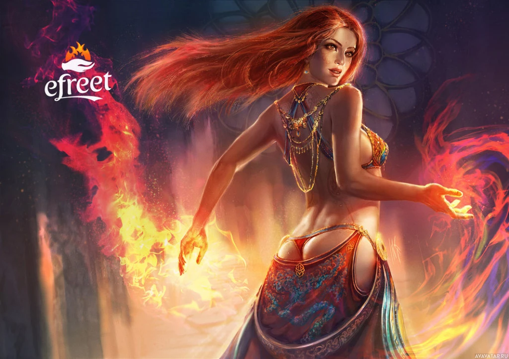 fire effects, which give the impression that she is engaging in combat or performing a magical act involving fire. The image has a fantasy or gaming-inspired aesthetic, and there's text at the bottom right corner that reads "effekt," likely indicating the creator or source of the artwork.