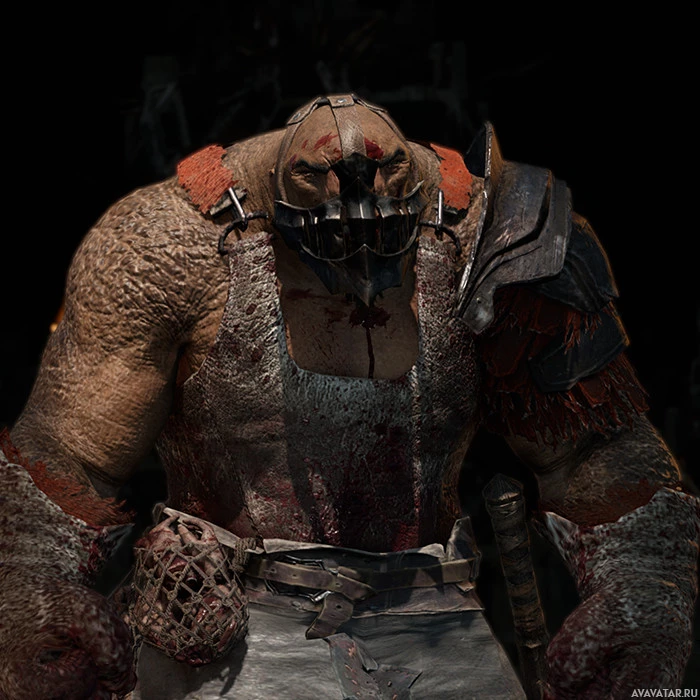 muscular build, and the armor it wears, which has a design reminiscent of medieval times with chain mail and a helmet. The character also has