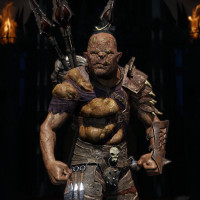 pieces of equipment or weapons attached to the armor. This character likely plays a role in the game's storyline, possibly being
