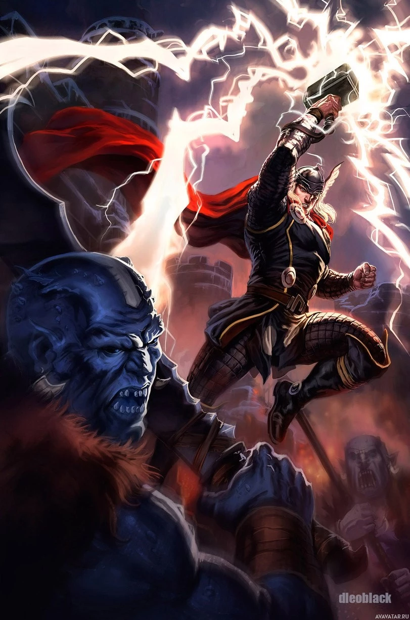 The image depicts Thor, a fictional superhero character from