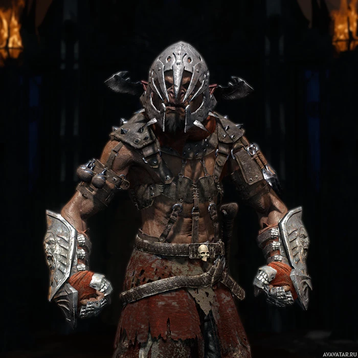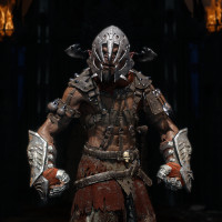 the video game "Dark Souls III." This character is wearing armor with spikes, a helmet that covers their face except for the eyes, and appears to be in