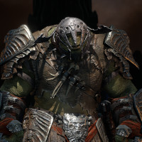 a fantasy character. The character appears to be a warrior or knight, dressed in armor with metallic details and what looks like