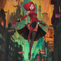 neon signs and skyscrapers that give it a futuristic or cyberpunk feel. Lina is known for her