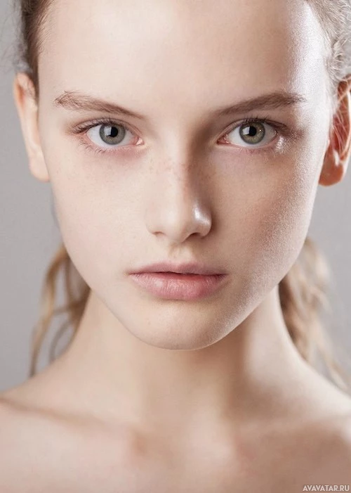 fair skin and her features are symmetrical, which often contributes to perceived beauty in photography. The image is focused on the face, with an emphasis on her eyes and lips, capturing details that may be used for artistic or commercial purposes, such as makeup advertising or portrait work.