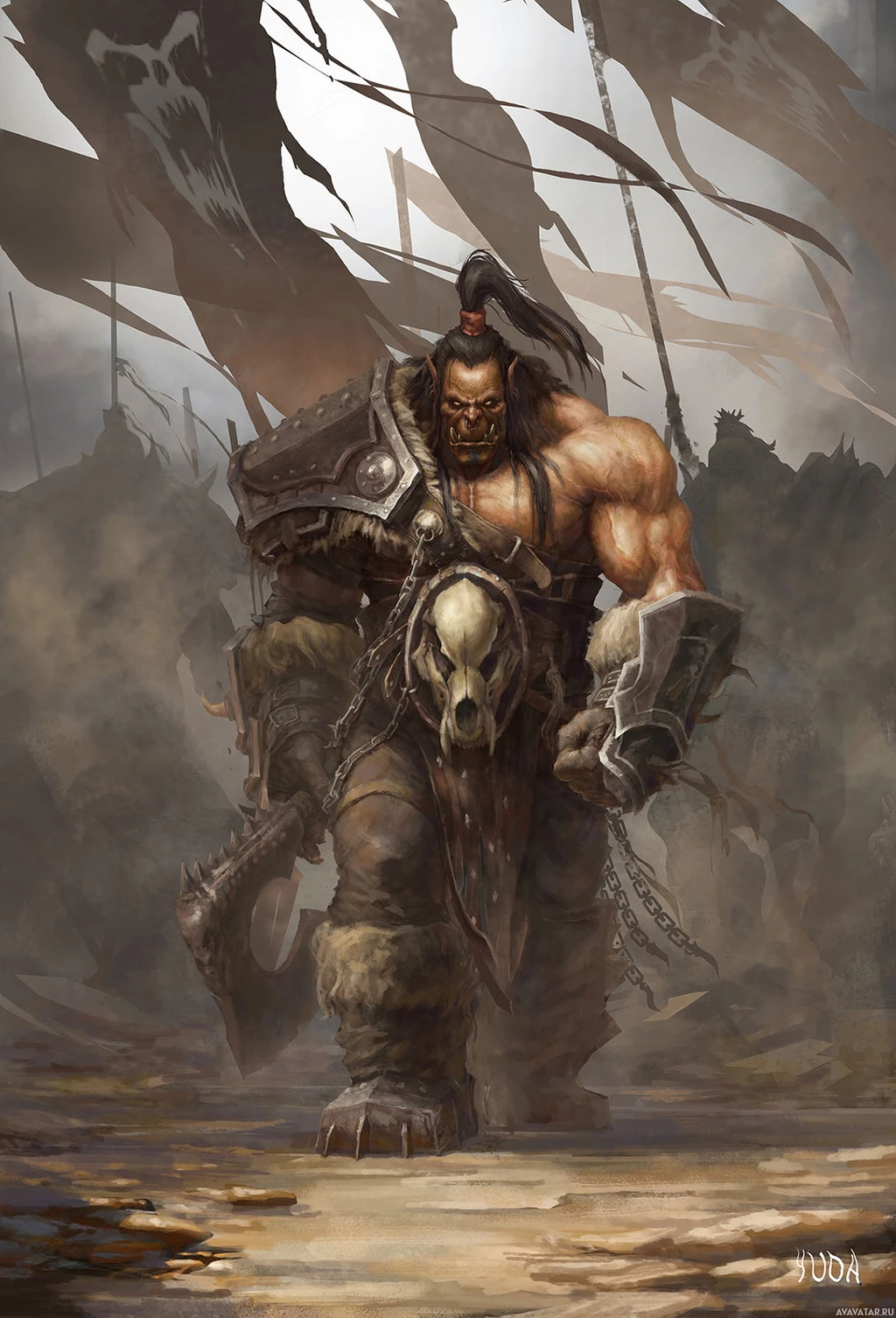 a fantasy warrior, likely from the "Warcraft" universe. This is an orc character, identifiable by its muscular build and distinct features like tusks and ears that are characteristic of this race in