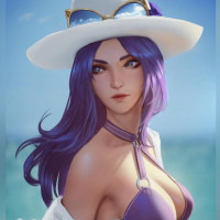 a white hat and sunglasses, giving off a relaxed, sunny vibe. Her attire includes a one-piece swimsuit in