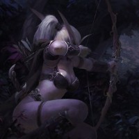 long ears, pointed ears, and is holding a bow, ready to shoot. The setting appears to be in