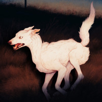 The image features a fantastical creature that resembles a wolf but has human-like hands and is standing upright on two legs. This type of depiction is not natural for real wolves, suggesting that the creature may be from folklore, mythology, or a work of fiction such as a fairy tale or fantasy story.