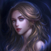The image shows an illustration of a young girl with long wavy hair and what appears to be blue eyes. She has a neutral expression on her face, looking directly at the viewer. The art style suggests it could be a digital painting or drawing, characterized by smooth lines and soft shading.
