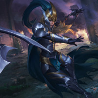 a dark forest or a battlefield at nighttime, as indicated by the ambient lighting and the surrounding environment. The style is reminiscent of high fantasy artwork often found in