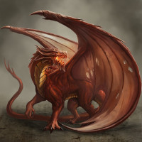 large wings and a long tail, and its mouth is open as if it's roaring or growling. The background suggests a dark, ominous environment that could be part of