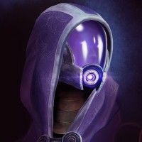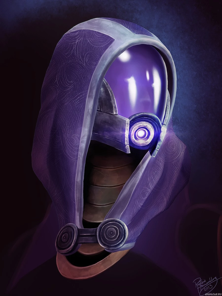 video game series. The character depicted appears to be Tali Zorah Vasir, who is known for her