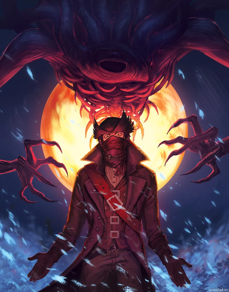 the video game "Bloodborne." The character appears to be wearing attire reminiscent of an 18th-century pirate or adventurer, with a coat,
