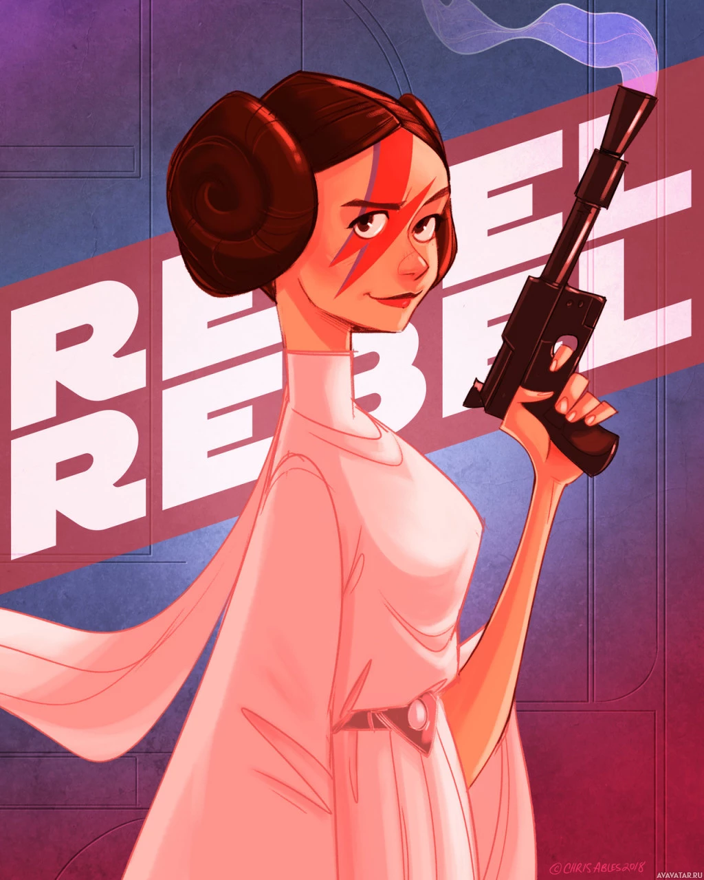 The image depicts an illustrated character, which is Princess Leia Organa from