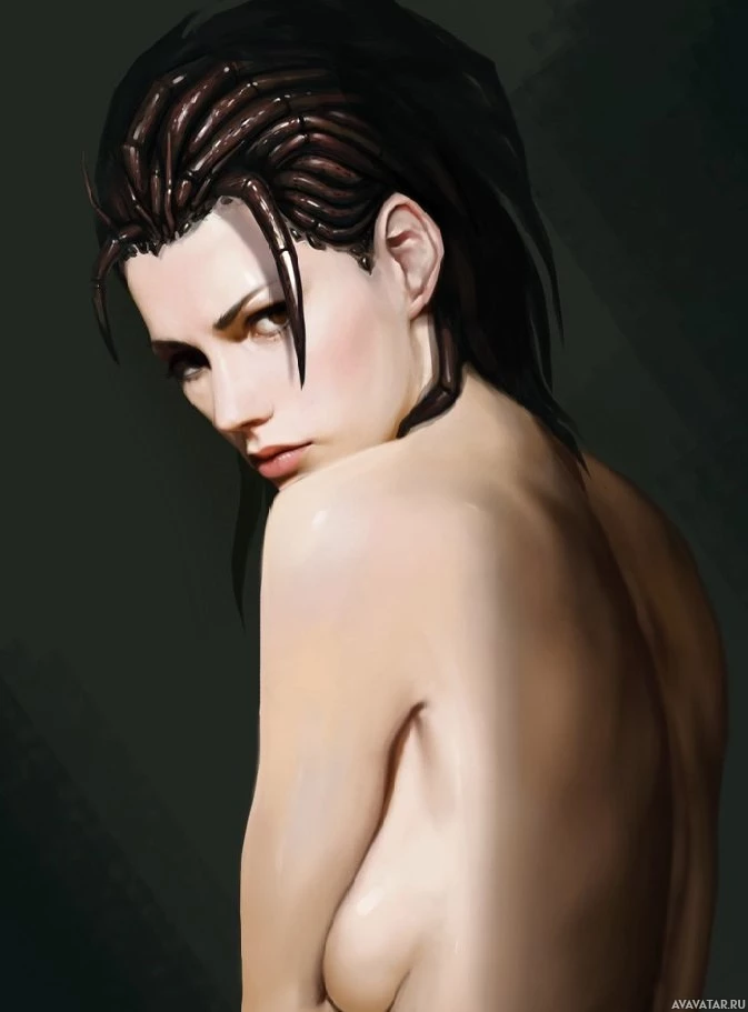 a chest piece, suggesting she might be a warrior or someone involved in combat. The character seems intense or focused, which may indicate she is part of an action or