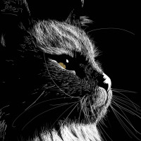 На картине изображена черная кошка с видными усами. Похоже, что он смотрит в сторону, слегка повернув голову в сторону зрителя, придавая ему внимательное или любопытное выражение. Фон — это простой градиент, который помогает подчеркнуть предмет изображения.