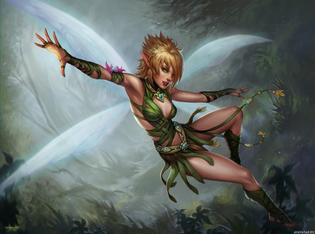The image features a fantasy-themed artwork of a fairy. The character is depicted in