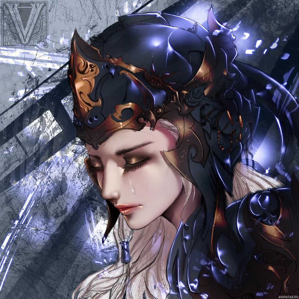 tear droplets visible near her face, which could indicate that she is experiencing emotions such as sadness or grief. The overall art style and the character's design give the impression of a digital artwork, likely from a game or comic