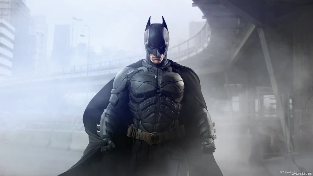 iconic costume, which includes a cowl, bat-like ears, a cape, and emblems on his chest that resemble bat wings. Batman's persona is also recognizable by his dark color scheme and the iconic bat insignia on his chest.