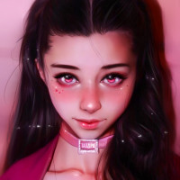 brown hair and is wearing what appears to be a pink shirt or garment with a high collar. The character has distinct