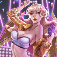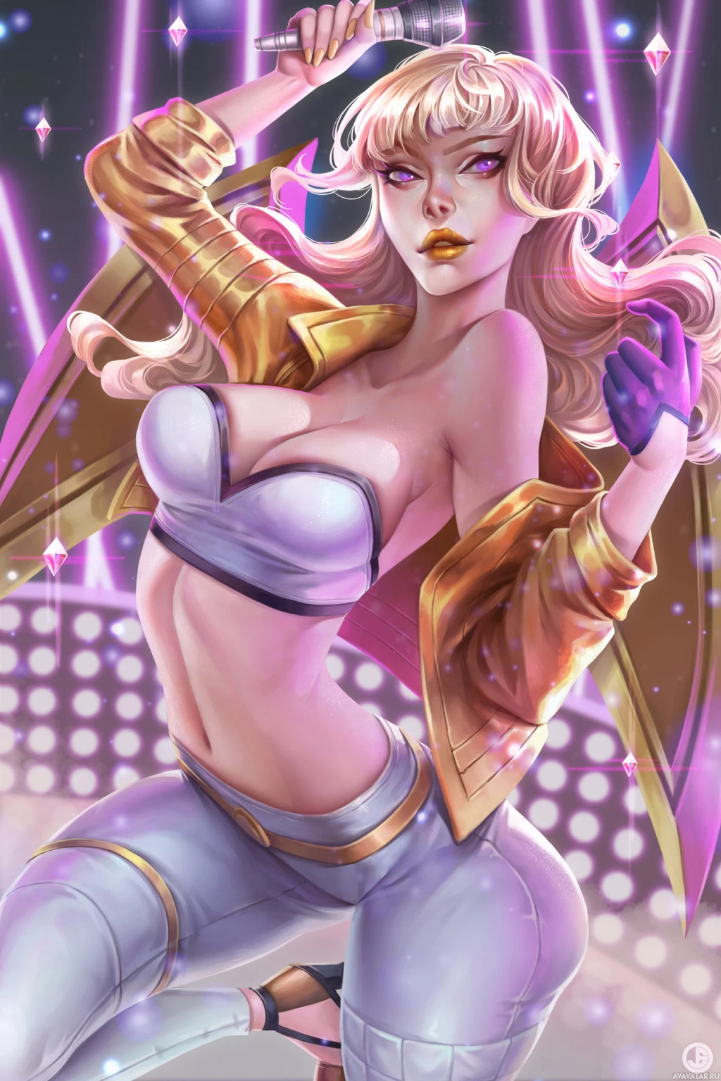a blonde girl with microphone, suggesting she may be a pop star or performer. The art style suggests it could be from