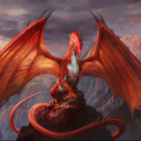 a rocky outcrop with its wings spread wide, possibly looking over a landscape or guarding a treasure. The overall composition, including the lighting and the setting, adds to the sense of grandeur and mystique associated with such creatures in