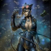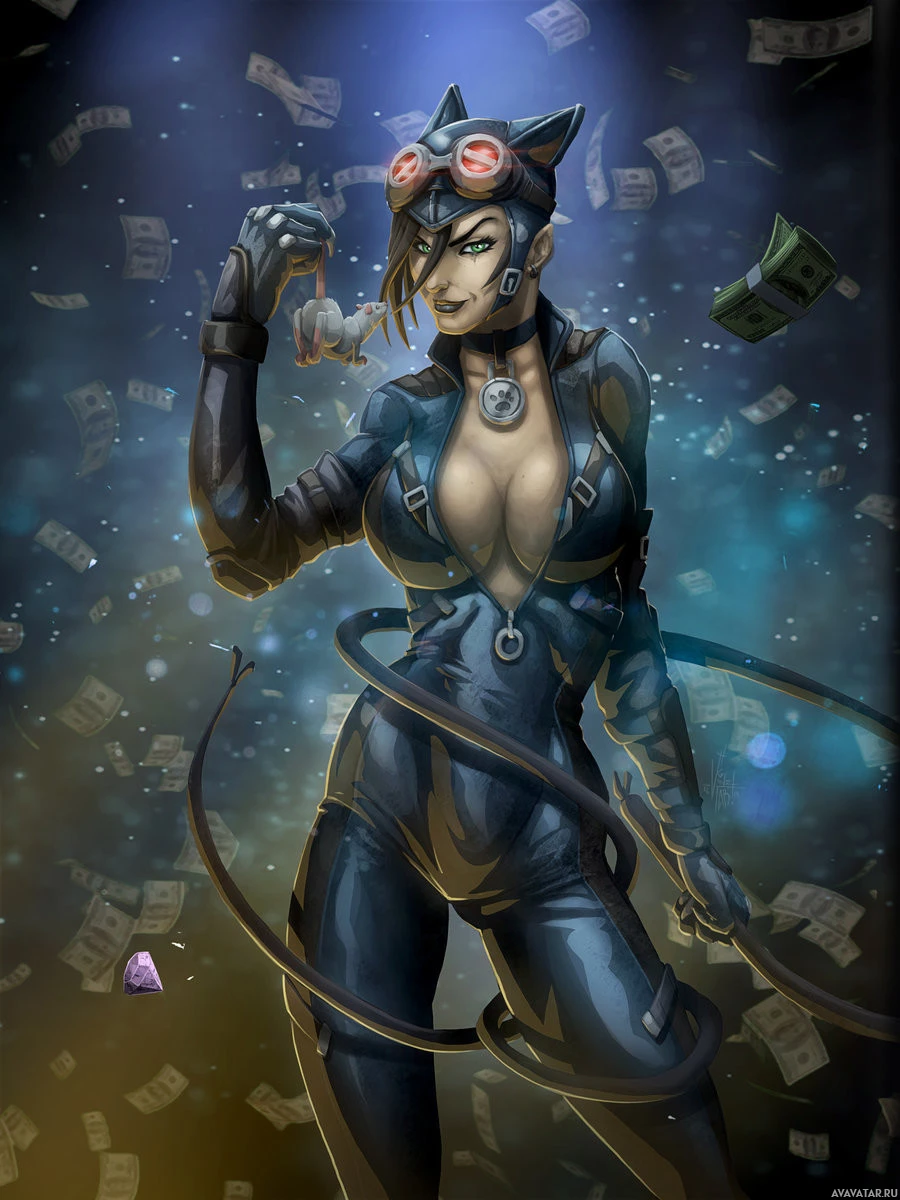 television series "Wizards of Waverly Place". This is evident by the costume and props associated with the character, including goggles, a mask, and a costume that is black in color. Surrounding the character are various bills and banknotes, suggesting themes related to wealth or money. The background has