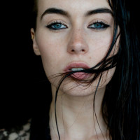the introspective feel of the photo. The lighting on her face highlights her features. It's a close-up shot, focusing on her