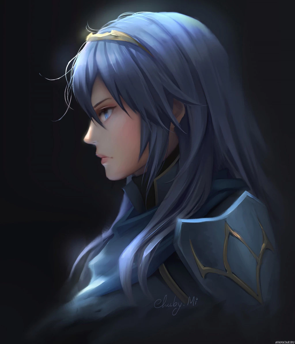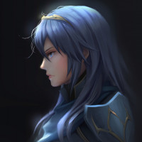 blue hair and what appears to be a serious or contemplative expression. She has detailed features, such as visible eyelashes and the hint of a nose. The art style suggests it could be from an animation or manga series, given