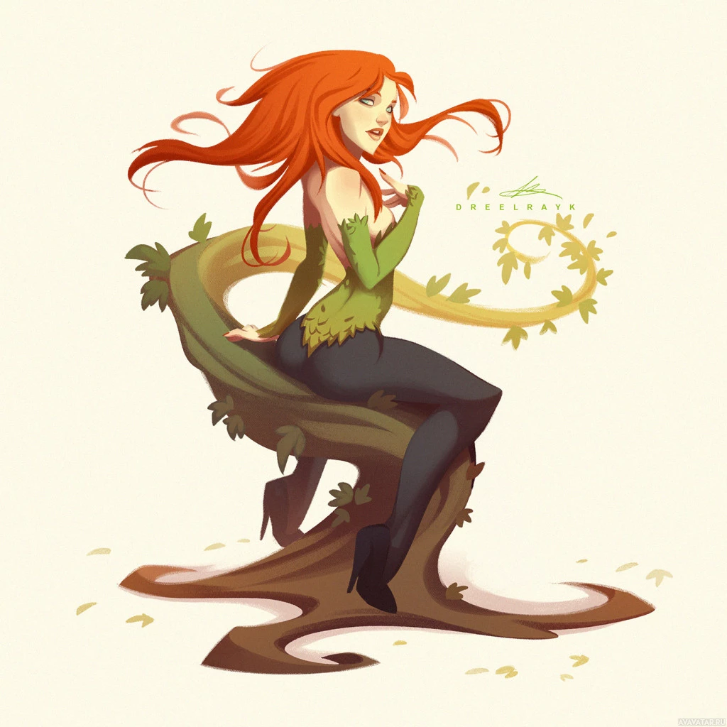 The image features a character that appears to be inspired by Poison Ivy,