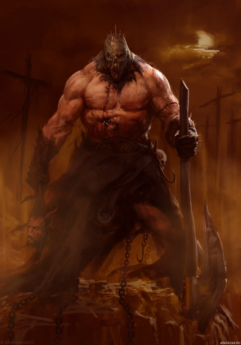 dark attire and holding what looks like a weapon or a tool for combat. The mask on their face adds to the ominous and frightening atmosphere of the scene. The background features